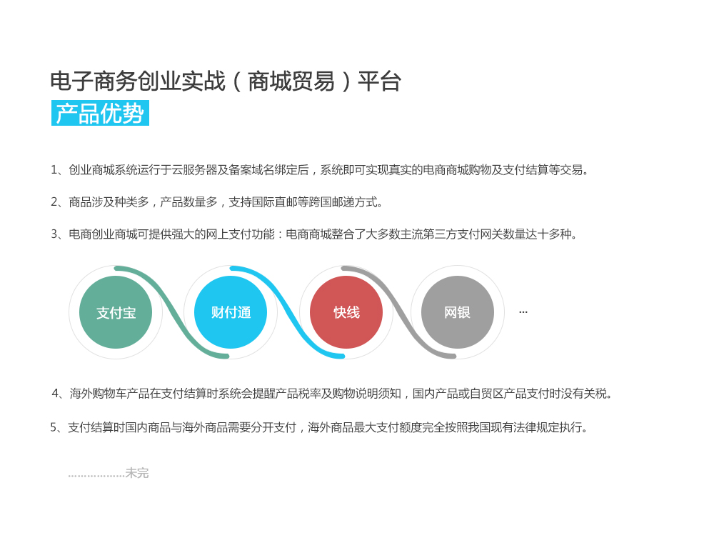 3、电商创业商城可提供强大的网上支付功能:电商商城整合了大多数主流第三方支付网关(如支付宝,财付通,快钱,网银等)数量达十多种。