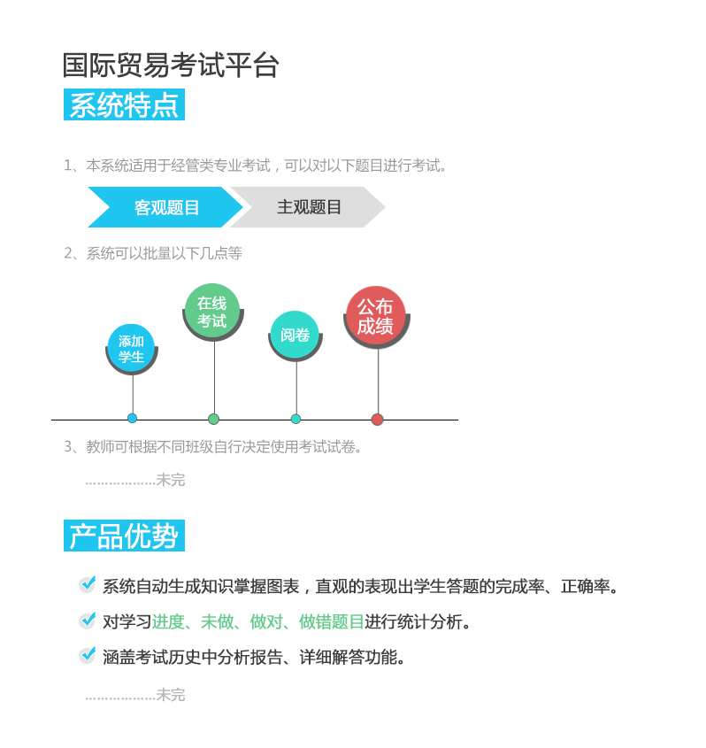 1、本系统适用于经管类专业考试,可以对客观题目、主观题目进行考试。
