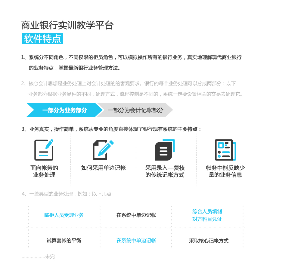 3、业务真实,操作简单,系统从专业的角度直接体现了银行现有系统的主要特点: