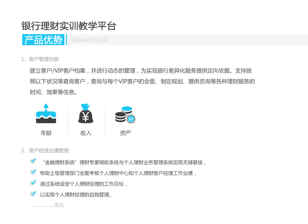 4、强大的产品库管理功能,它可以配合金融产品库教学,让学生做市场调研,自己管理产品库。
