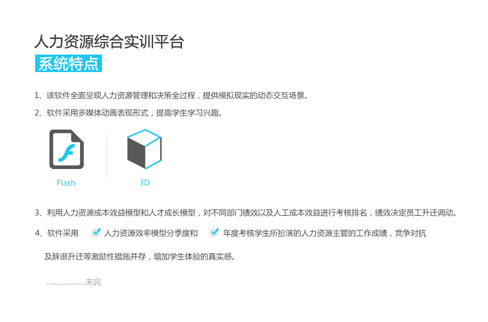 4、软件采用人力资源效率模型分季度和年度考核学生所扮演的人力资源主管的工作成绩,竞争对抗及辞退升迁等激励性措施并存,增加学生体验的真实感。